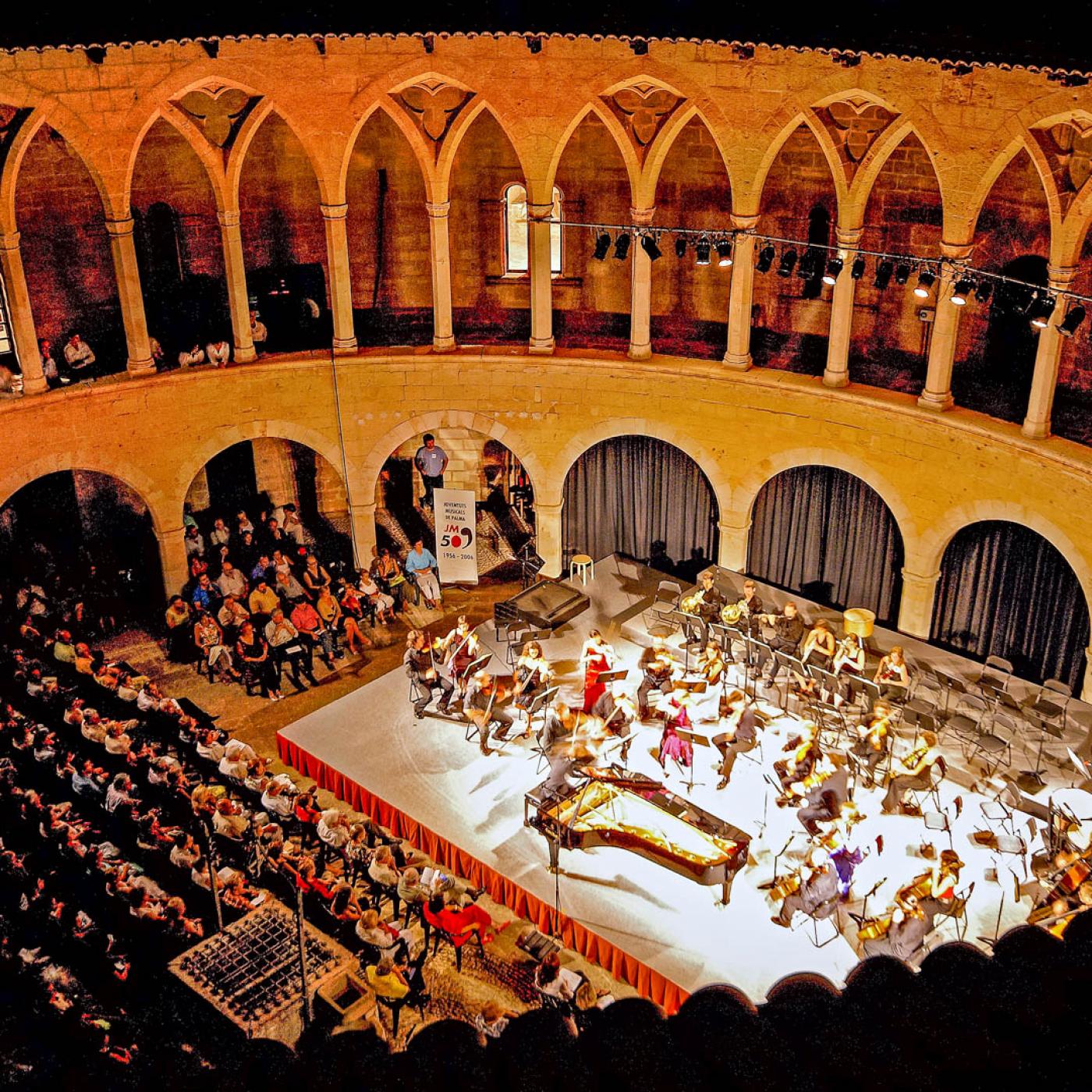El pati d'armes, el pati central del castell, és un dels elements més emblemàtics de dita fortificació. Aquest destaca per un coll de cisterna que connecta amb un aljub situat baix el pati, i les dues arcades, una amb arcs de mig punt i l'altra amb arcs ogivals, corresponents als dos pisos que l'envolten.