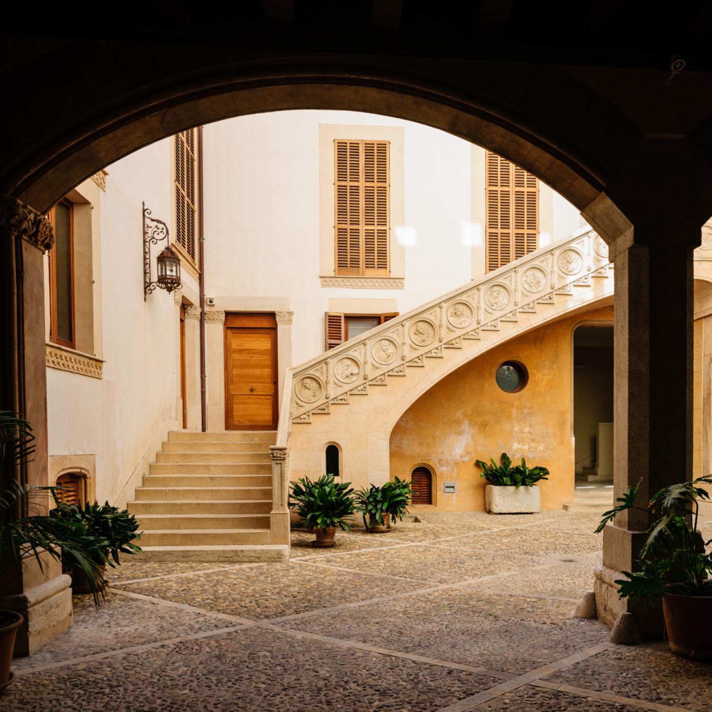 Ca n'Espanya-Serra is an old neo-Gothic house that was turned into a guesthouse in the 20th century called Hostal Isabel II. It stands out for its huge façade decorated with sculpted heads of mythological figures and for the courtyard with a neo-Gothic staircase.