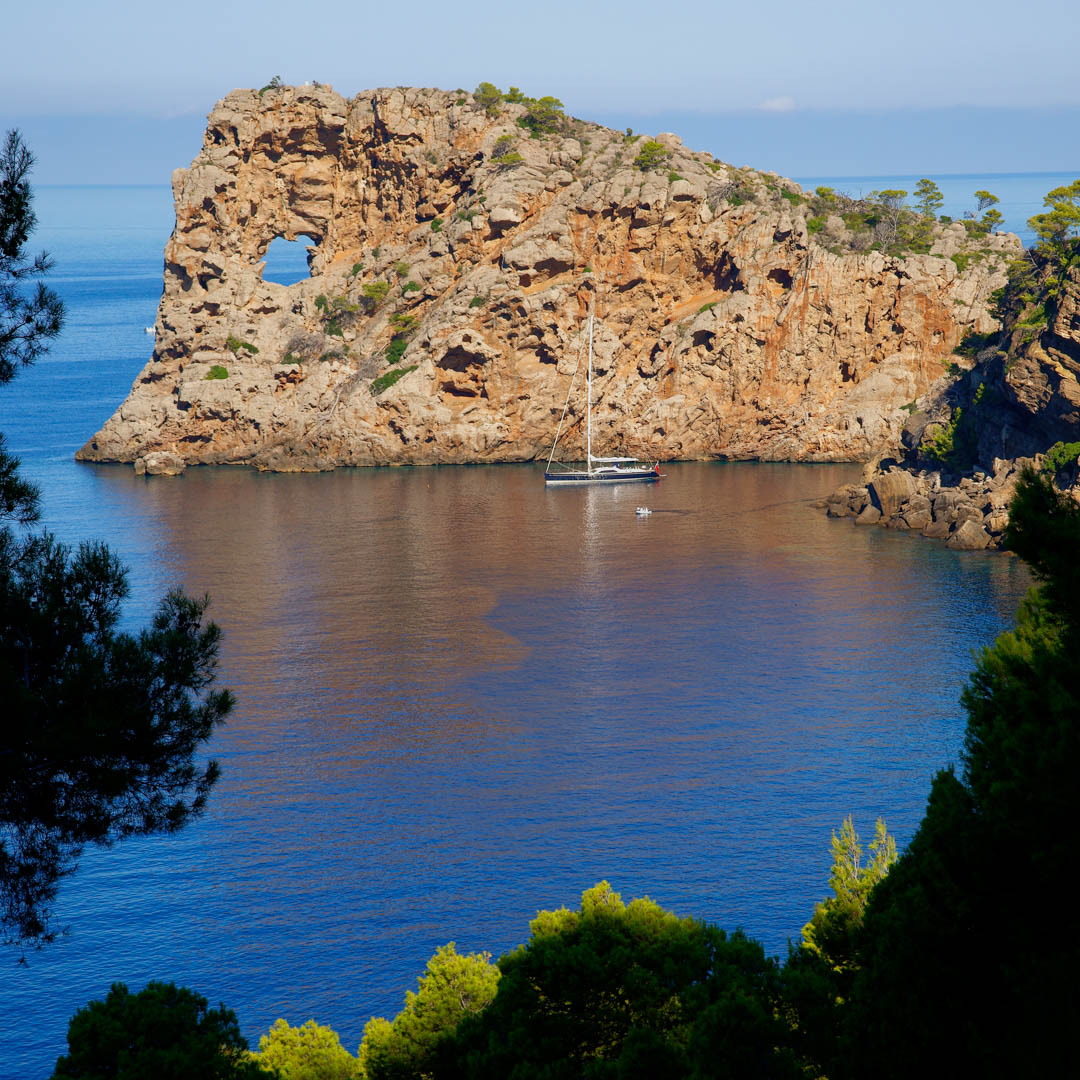 Sa Foradada, also known as Na Foradada, is one of the island of Majorca's most striking natural attractions. It is a unique peninsula, culminating in a rock with a hole in it through which the blue waters of the Mediterranean Sea can be seen.