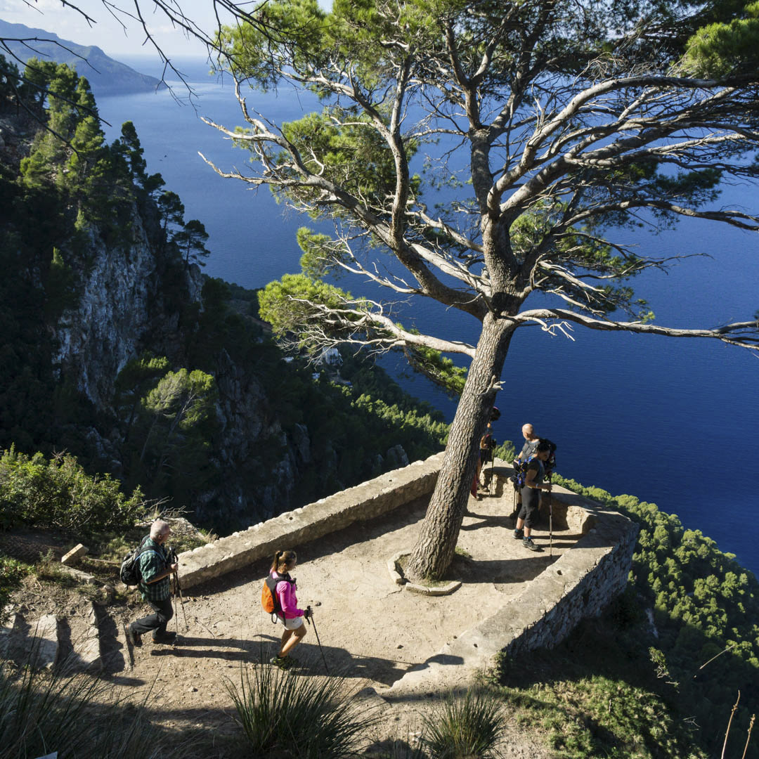 El mirador de Es Pi está situado debajo de Ca madò Pilla, desde donde se domina el tramo de litoral comprendido entre la playa de Es Guix y S’Estaca. La plataforma del mirador se sustenta sobre muros de contención de pedra en sec1 y pedra en verd2, y en el centro hay un pino que data ya de 1911.