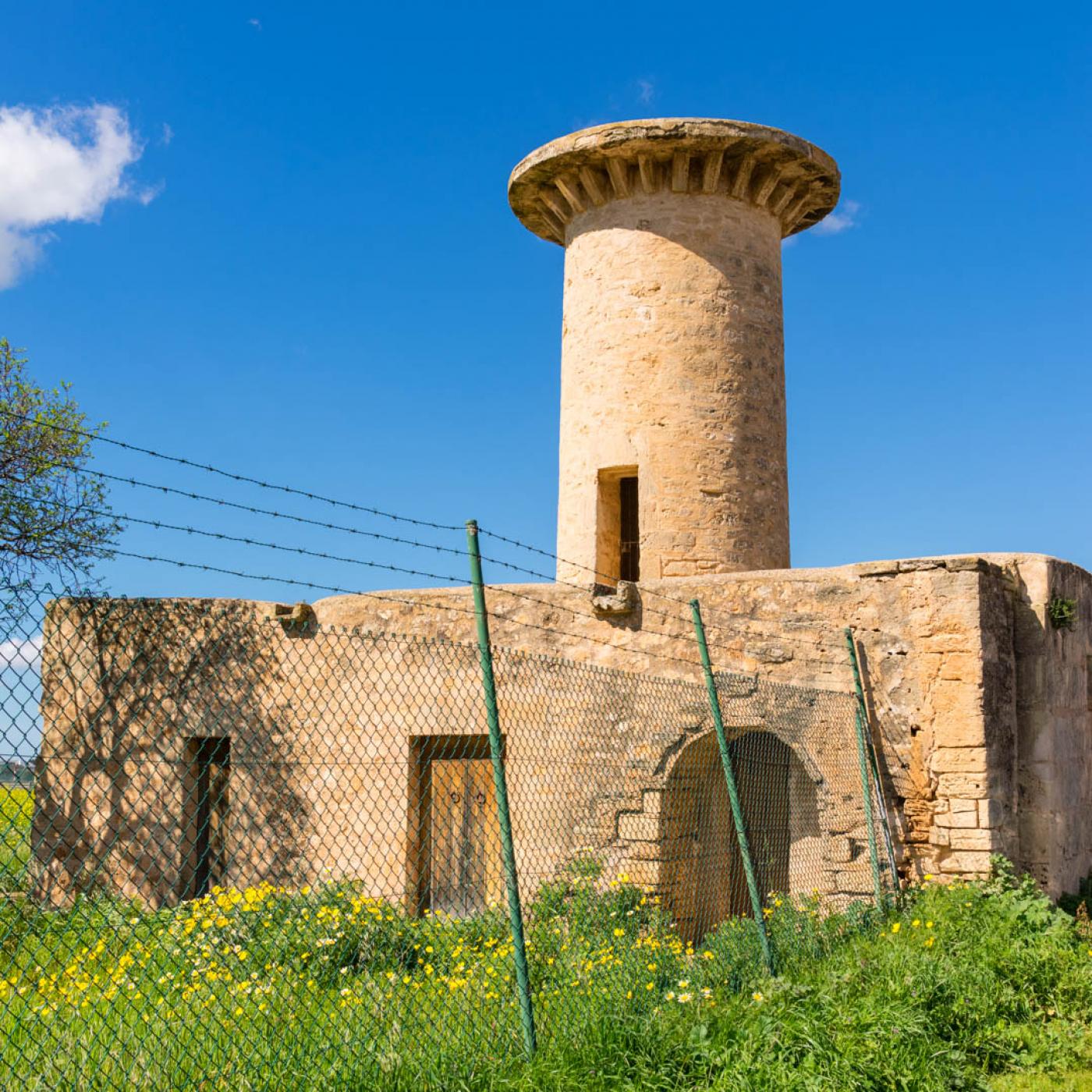 El molino de Can Reviu es uno de los más emblemáticos de todo el Pla de Sant Jordi, ubicado en lo que es el área de AENA. Se trata de un molino aguador, construido seguramente en el siglo XIX, con el fin de desecar esta antigua zona húmeda.