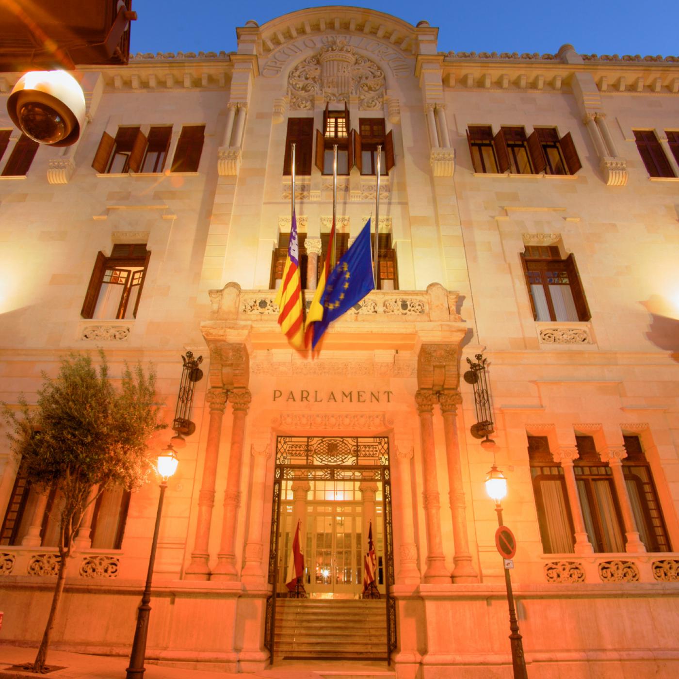 The building that today houses the Parliament of the Balearic Islands was built in 1848 on the site of the demolished Monastery of Sant Domingo. One of its most outstanding current features is the plenary assembly hall, the Círculo Mallorquín’s former ballroom, known as Sala de Cariàtides, designed by Ricard Ankermann in Historicist style.