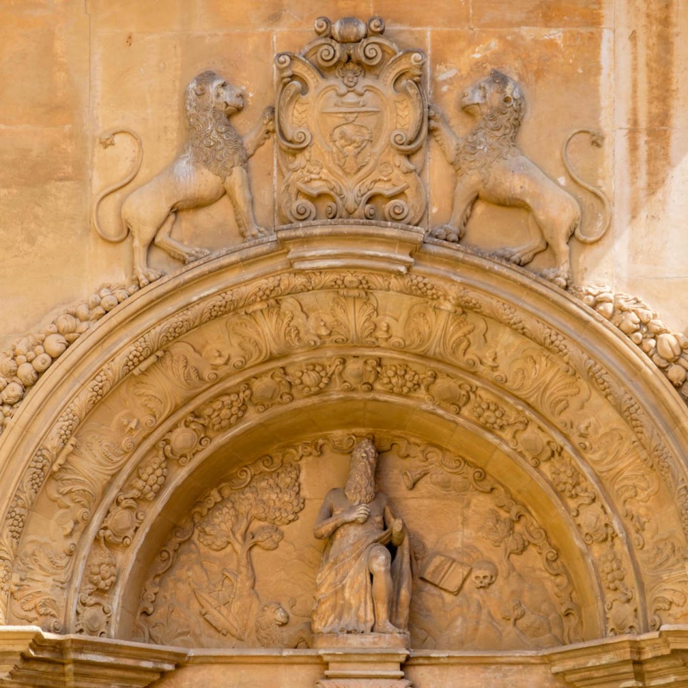 Entre los elementos arquitectónicos podemos destacar el muro que rodea el huerto, en la calle del Mar, que coincidía con el trazado de la muralla medieval, a pesar de que las torres son una reconstrucción de la década de 1960. Destacan también el acceso a la iglesia ubicado en la plaza de Sant Jeroni, que data del siglo XVII y una escultura del santo en el tímpano.
