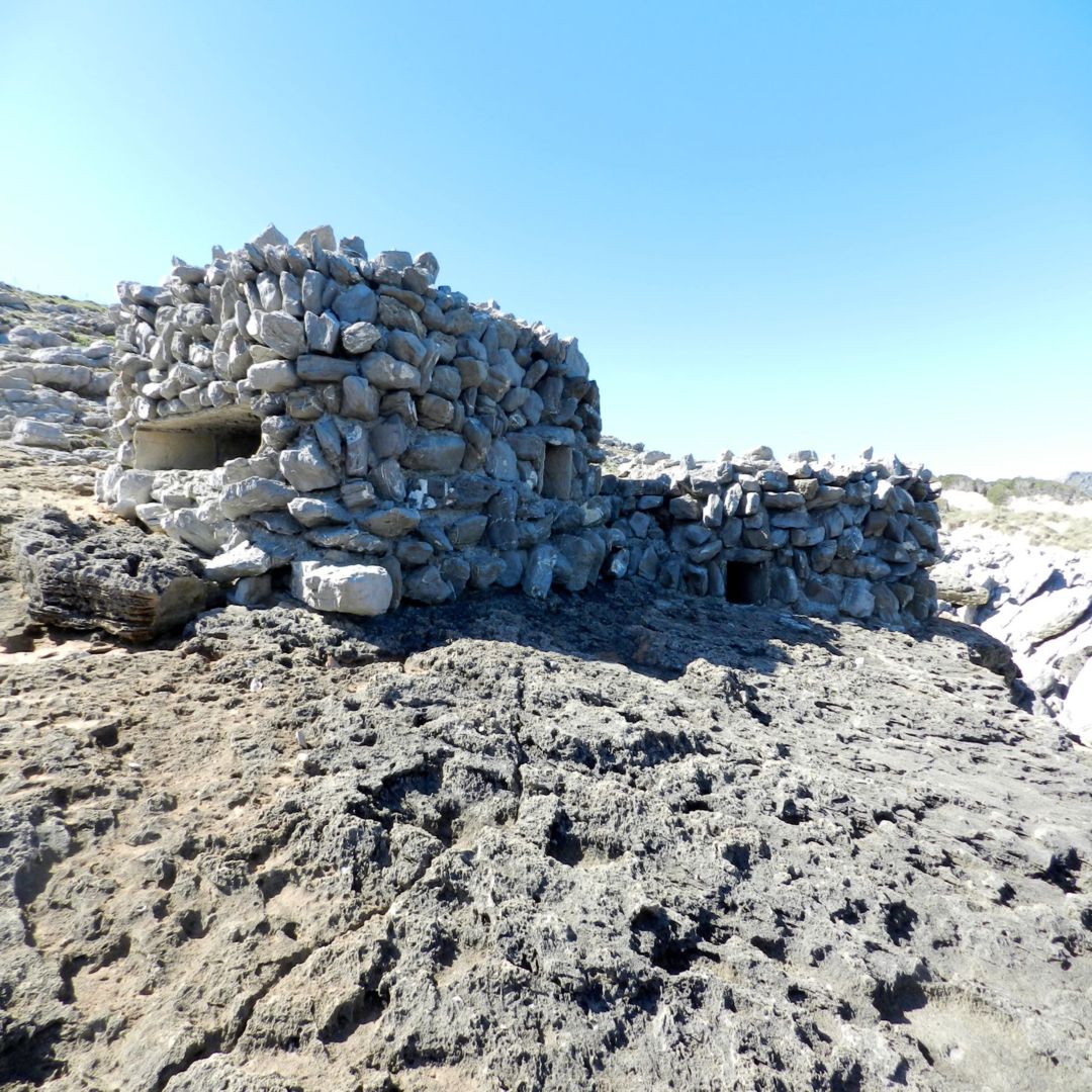 A unos cinco minutos caminando desde cala Mesquida se encuentra esta construcción erigida, seguramente, entre finales del siglo XIX o principios del XX. Se trata de un nido de ametralladoras que se usó, posiblemente, para parar desembarcos de contrabando y defender el litoral durante la Guerra Civil española.